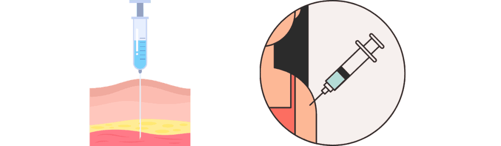 Lâaiguille est introduite Ă un angle de 45° Ă 90° selon la longueur de lâaiguille et lâĂ©paisseur du tissu adipeux.